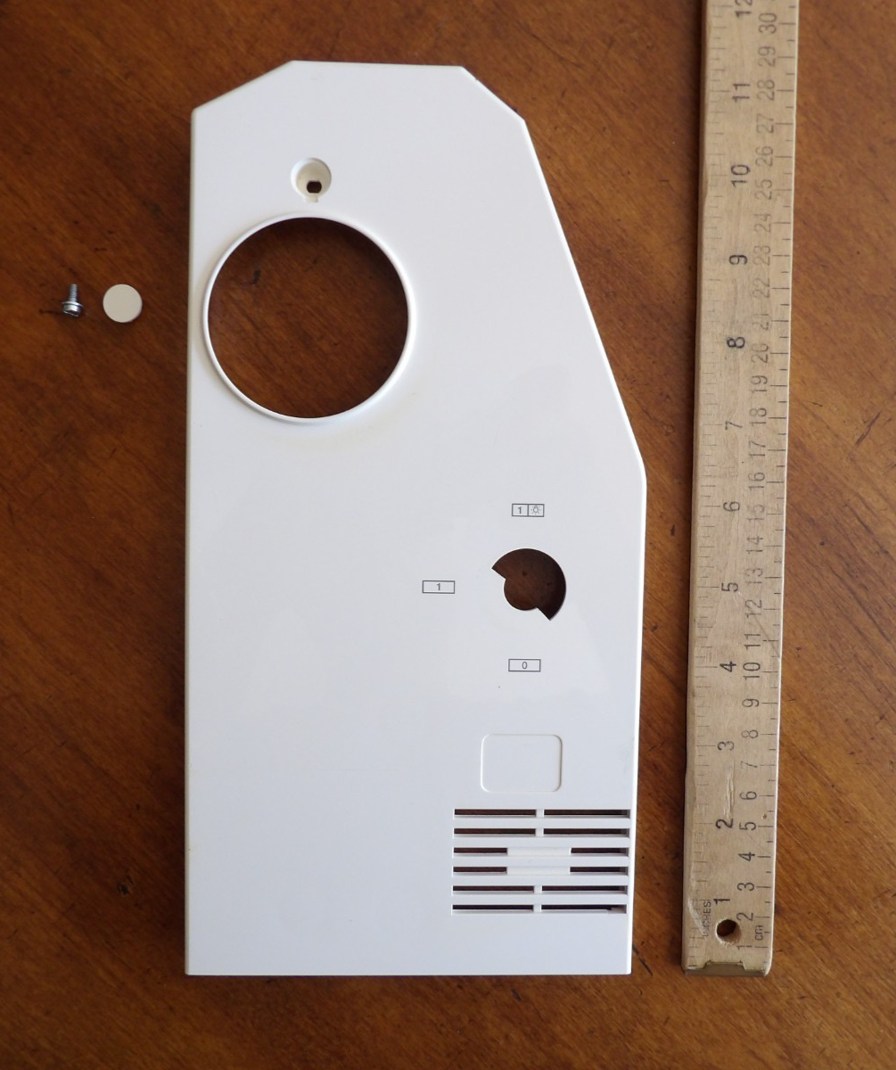 This came from a Bernina 1008. It is the side Panel where the handwheel is. It comes with one screw and the little screw cover.