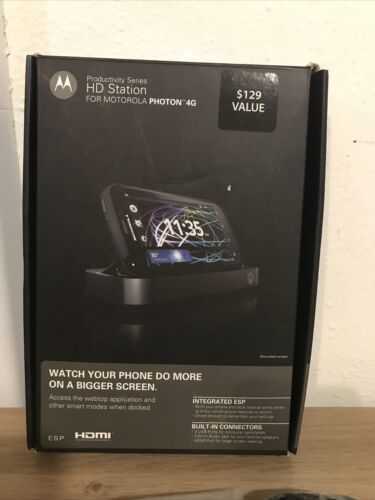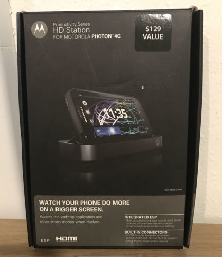 Motorola PHOTON 4G HD Multimedia Station Watch your phone do more on a BIGGER screen!Motorola 89501N PHOTON 4G HD Station with Rapid Wall Charger. The HD Station has built in connectors- 3 USB ports for computer peripherals, 3.5m audio jack for your favorite speakers, and HDMIA Station With An Extra Sense. With ESP technology, you decide which apps and short cuts to keep on your home screen and the dock remembers.