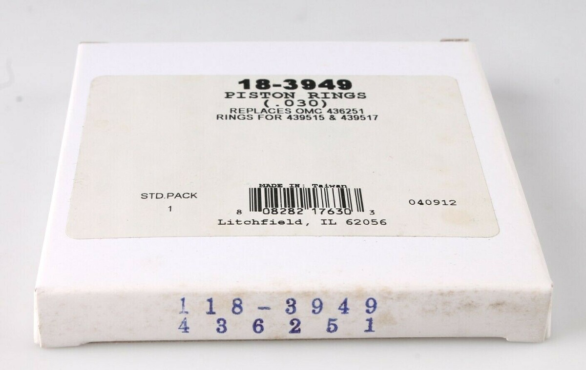 This is for a brand new OEM Johnson Evinrude OMC Piston Rings Kit .030 in. OMC 18-3949 436251 Rings are sold by the pair. Qty 1 will do one piston Fits: Johnson / Evinrude 130hp 1995-99 (will fit OEM pistons only, Call us for aftermarket fitment) 200hp 1993-99 Ocean Pro, Ocean Runner (loop charge / finger ported) 225hp 1993-99 Ocean Pro, Ocean Runner (finger ported) May fit additional models to those listed above. Although your model may be listed above we always suggest that you compare the OEM number of the part for your engine to those listed below Returns of NEW ITEMS accepted in 30 days ONLY if they have NOT been installed and are in same condition as when they were shipped. If you are missing parts of the item or original packaging, item CANNOT be returned.