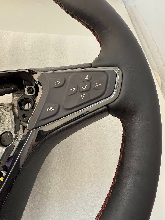 ReplacementCorp, one of the largest factory electronics websites, has branched out!! If you?ve been to our ReplacementCorp site, you know we have a HUGE selection of OEM parts and compatible accessories. Now we?re offering a few select products here too. Same great ReplacementCorp quality.....in a new location. SUMMARY Factory original (OEM) GM steering wheel Assembly line leftover Has light blemishes See photos Leather wrapped Has the cruise control switch built in So it will support that option If your car had it before See details in ADDITIONAL INFO section Has the heated steering wheel button So it will support that option If your car had it before See details in ADDITIONAL INFO section Has the pre-crash collision alert button So it will support that option If your car had it before See details in ADDITIONAL INFO section Is equipped with audio and cluster control switch So it will support that option If your car had it before See details in ADDITIONAL INFO section Is equipped with volume and favorite switches So it will support those options If your car had them before See details in ADDITIONAL INFO section Is not equipped with paddle shifters Airbag is not included Nor do we have it Black leather with red stitching Nice condition Has blemishes From bumping neighbors or mistreatment See photos 30 day warranty Application is unknown So match your part number!! GM part number 85588622 APPLICATIONS We were unable to find the exact application for this vehicle, so it must be somewhat rare. Make sure it matches your part number!! They make different versions for every vehicle. ADDITIONAL INFO This does have the heated steering wheel, pre-crash collision alert buttons, and the audio/cluster control switch, as well as the volume controls. However, if you did not have any/some of those switches before, merely adding this wheel may not get you those features. In some cases additional wiring may be required and possibly even a different gauge cluster and/or other parts. Please don't say we didn't warn you... There were multiple versions of the steering wheels because of vehicle options. We advise you to check with your dealer if you have any concerns about features, applications or special installation considerations. Shipping Policy: We ship fast. We provide tracking. (It is uploaded to this site.) A signature may be required due to it's value.