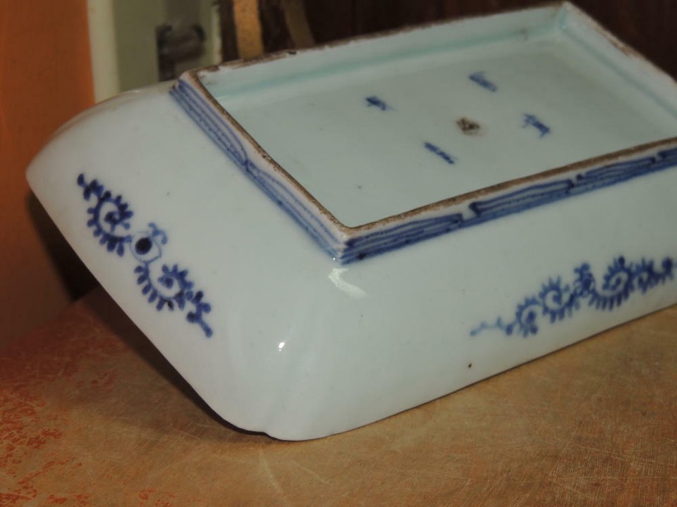 ONE Japanese Dish/ Tray 8.25"x4.7 Blue White Arita Meiji 19th pos Fuki Choshun 5