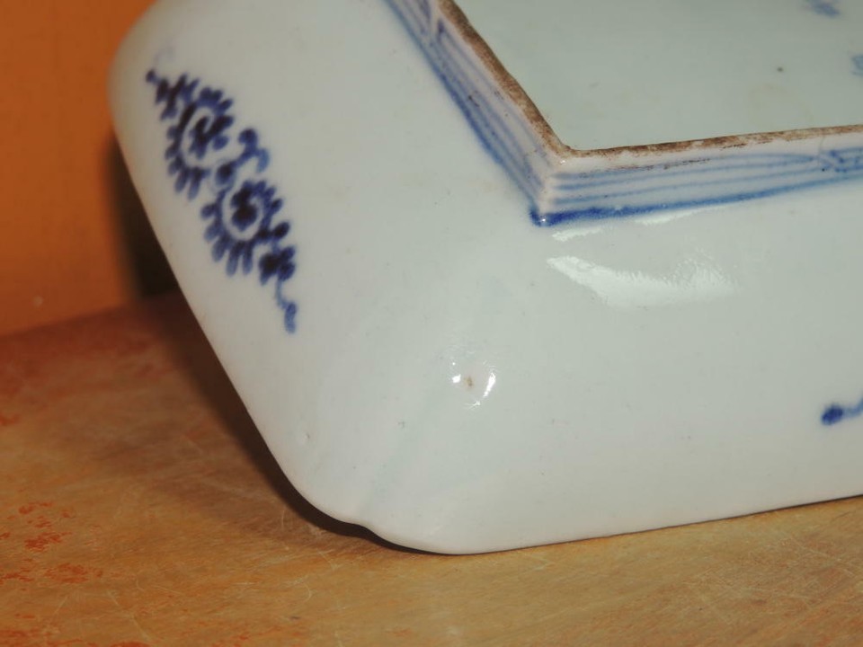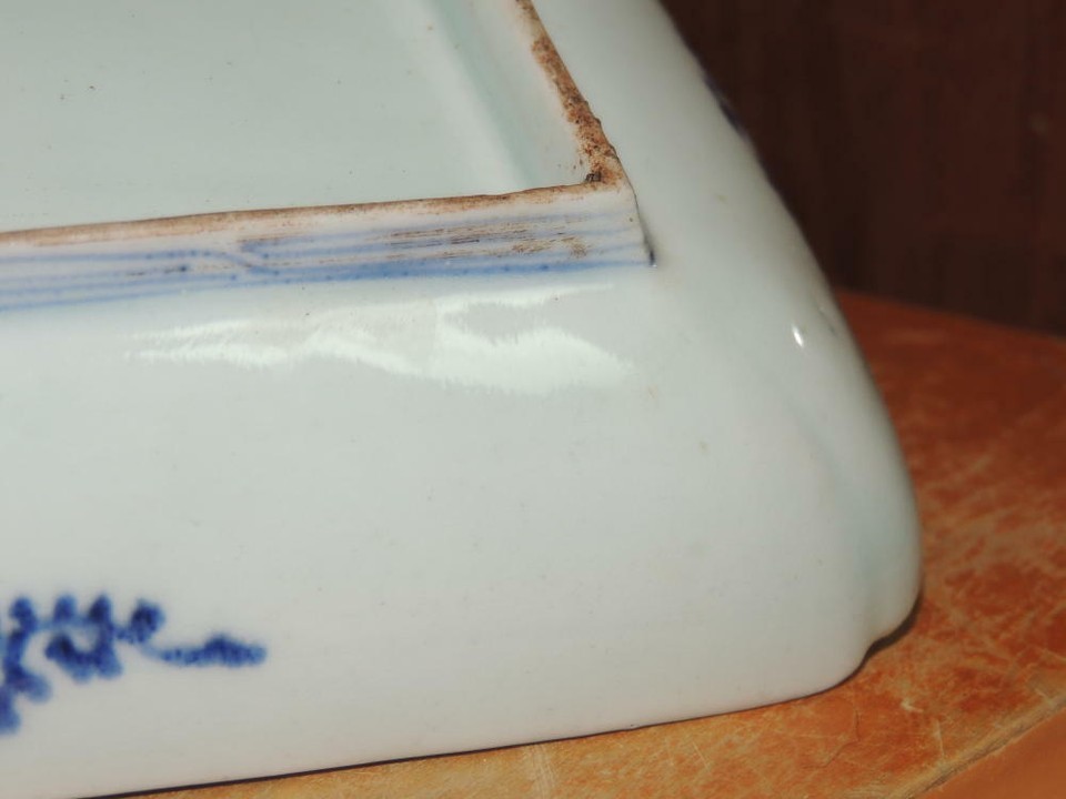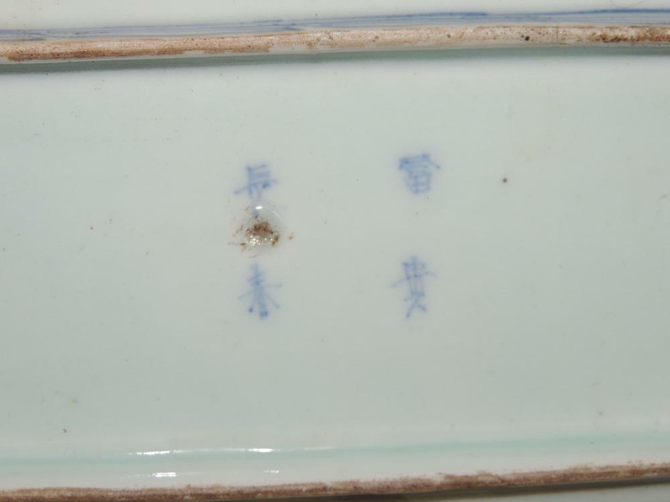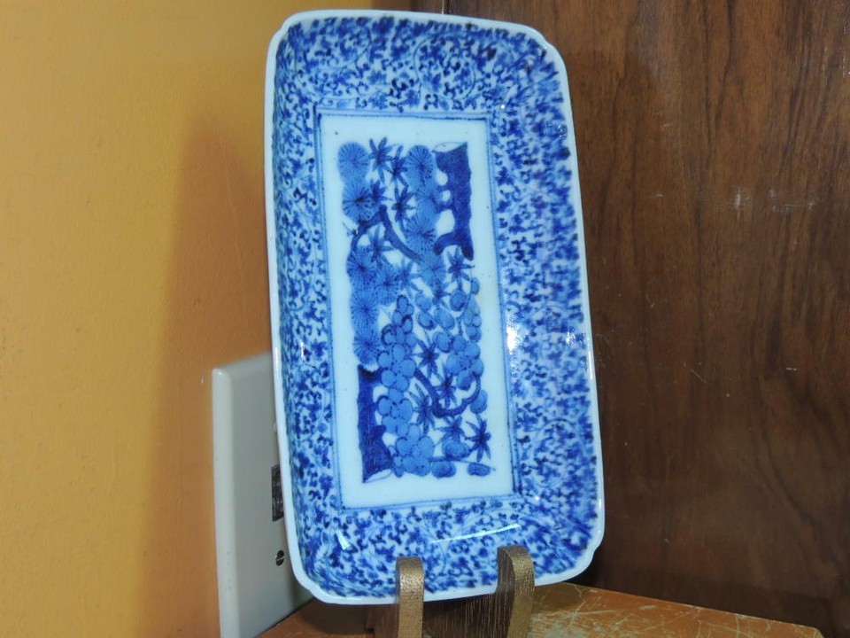 ONE Japanese Dish/ Tray 8.5"x4.75 Blue White Arita Meiji 19th pos Fuki Choshun 2