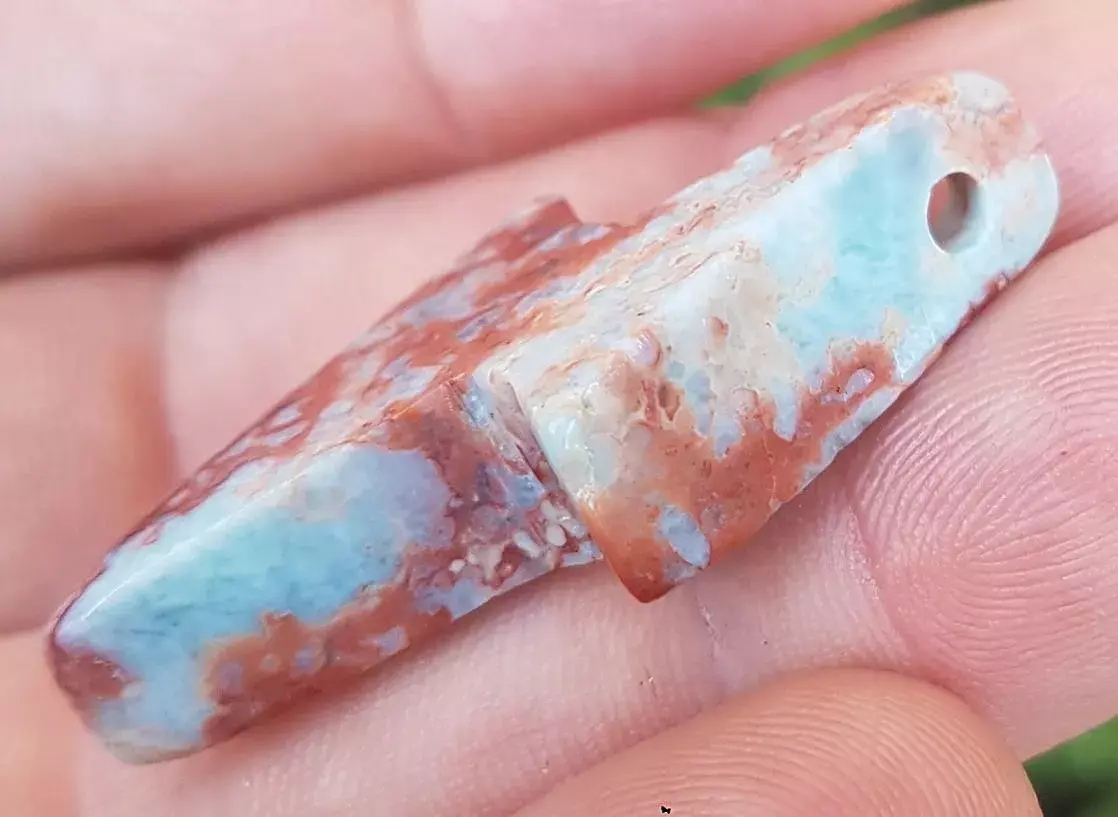 ORIGINAL larimar handcarved Gemstone RAY pendant 10 grams (j-1)