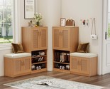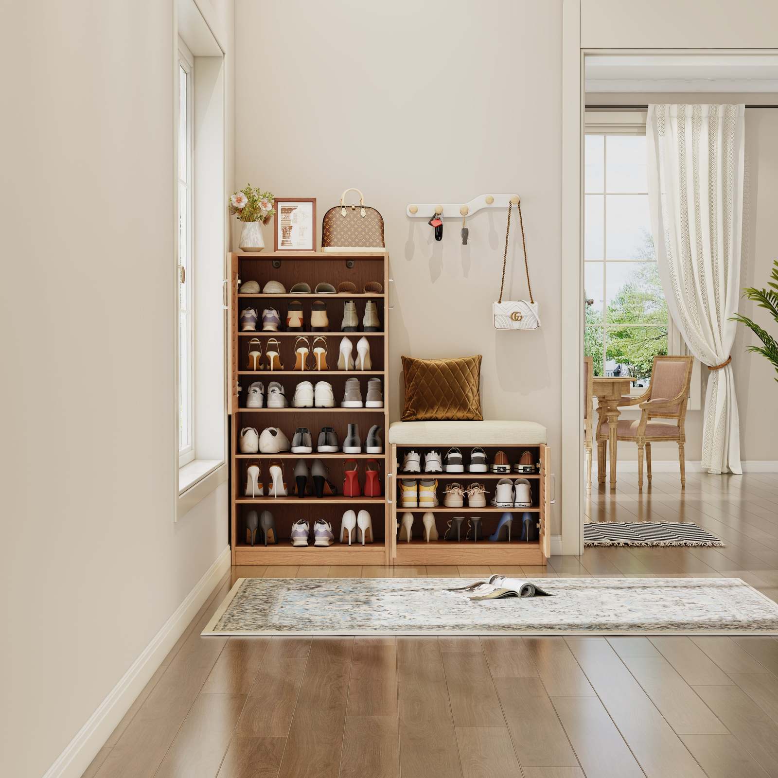 - Oak Shoe Storage Bench with Cushion: Multifunctional Entryway Rack