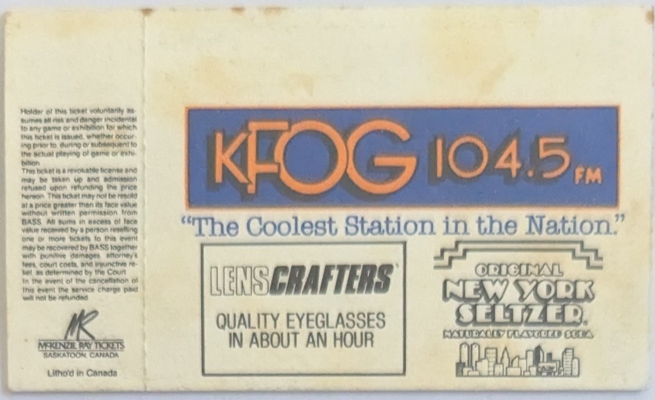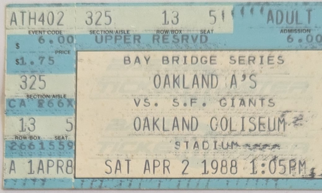 Oakland A's vs SF Giants Oakland Colisum Apr 2 1988 Ticket Stub