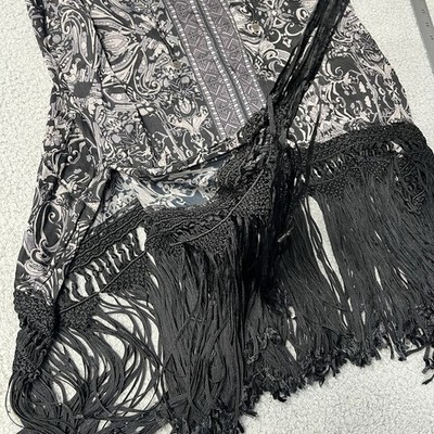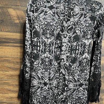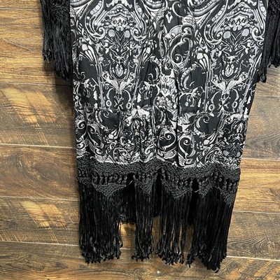 - Odd Molly Tunic Dress Fringed Tassel Boho Small Sexy Goth Hippie Gypsy Blk White