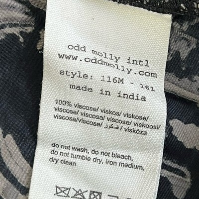The Odd Molly tunic dress is a stylish and versatile piece that combines elements of boho, goth, and hippie fashion. Featuring a geometric pattern in black and white, long flared sleeves, and fringe accents, this midi-length dress is perfect for a variety of occasions such as travel, weddings, parties, formal events, workwear, and business. Made from viscose jersey fabric, this pullover dress has a shift style and is ideal for the winter, fall, and spring seasons. Its unique blend of themes and accents make it a standout piece in any woman's wardrobe.