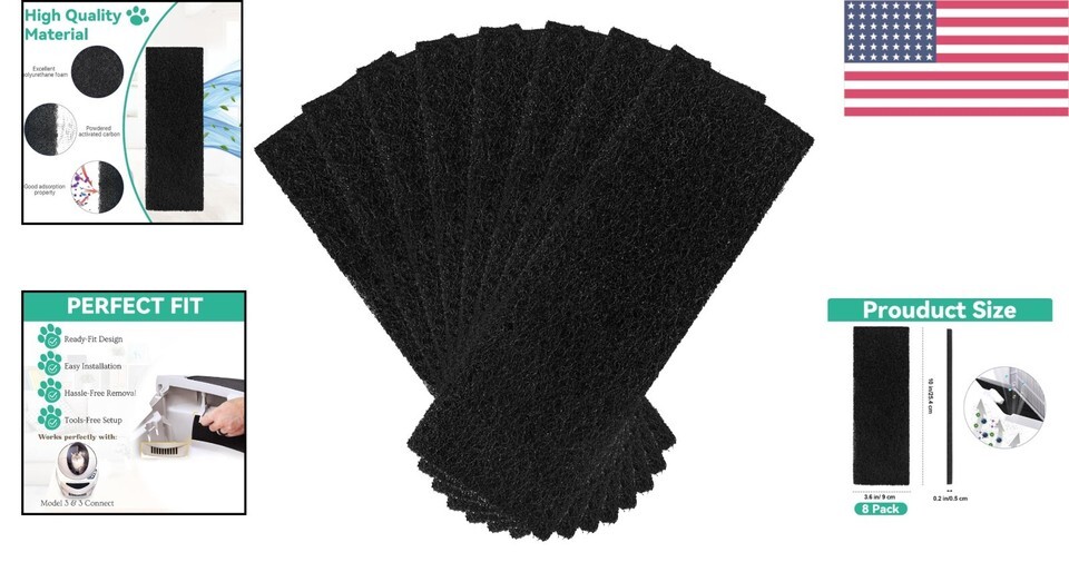 Odor-Blocking Replacement Filters (8-Pack) for Litter-Robot 3 - Easy to Install ? ? ? ? ? ? ? ? ? ? ? ? ? ? ? ? ? ? Odor-Blocking Replacement Filters (8-Pack) for Litter-Robot 3 Key Features: Compatibility: Our carbon filter is perfectly compatible with the Litter-Robot 3, ensuring a seamless fit without gaps for optimal performance. Highly Absorbent: Crafted from high-quality powdered activated carbon and fibrous materials, these filters are designed to maximize adsorption capabilities. Reduce Odors at Home: Effectively controls litter drawer odors, ensuring your space remains fresh and inviting even with pets around. Pack of 8: Enjoy 8 months of advanced odor control. Change your filters monthly for consistently fresh air, welcoming unexpected guests anytime. Easy to Install: No additional tools required! Simply pull out the litter drawer, replace the old filter with a new one, and you're done?no measuring or trimming needed. Upgraded Efficiency: Our filters feature more activated carbon and a higher PPI (pores per inch) count, greatly enhancing the efficiency of odor blocking and absorption. Why Choose Our Odor-Blocking Replacement Filters? Your home deserves to be a haven, free from the unsightly odors that come with having pets. Our Odor-Blocking Replacement Filters are not only meticulously designed for the Litter-Robot 3 but are also exceptionally effective at controlling unpleasant smells. With a simple installation process and an impressive lifespan of 8 months, you can effortlessly keep your living space fresh and comfortable. Don't let odors dictate your home's ambiance. Choose our quality filters for a clean, odor-free environment. Order your 8-pack today and experience the difference! Shipping Free Fast Shipping - We offer free shipping to most of the USA with a normal delivery time of 3-7 days. However, due to the current situation, additional delivery time (up to 3 weeks) may be required for some items. Alternative Carriers - We may use alternative carriers (e.g. USPS, FedEx, UPS, etc.) to ensure your package arrives safely and on time. Due to the use of multiple carriers, we are unable to provide a tracking number automatically. Handling Time - Orders are processed and shipped within 1-2 business days of receiving cleared payment. Shipping Restrictions - Shipping to Alaska, Hawaii, Puerto Rico, Guam, and other US territories may incur shipping charges or delivery restrictions. Please contact us before ordering, or your order can be refunded/cancelled. State Restrictions - There may be restrictions based on your state of purchase. For example, certain items may not be shipped to California due to state regulations. Contact for Tracking Updates - If you require tracking updates or have any concerns about the delivery of your order, please feel free to contact us, and we will be happy to assist you. Return 30-Day Hassle-Free Returns - We want you to be completely satisfied with your purchase. If you are not, you can return the item within 30 days of receiving it for a full refund or exchange. Easy Return Process - To start a return, simply contact us and we will provide you with a prepaid return shipping label and detailed instructions. Restocking Fee - There are no restocking fees for returns. However, the buyer is responsible for return shipping costs if the return is not due to a seller's error. Refund Processing Time - Refunds will be processed within 5 business days of receiving the returned item in its original condition. Payment We accept all major credit cards, PayPal, and Apple Pay for your convenience. Your payment information is secure and encrypted to ensure a safe and seamless transaction. Please complete your payment within 3 days of purchase to avoid any delays in shipping. Feedback Your feedback is extremely important to us. We strive to provide the best products and customer service possible. If you are satisfied with your purchase, please take a moment to leave us a positive review. If you have any concerns or issues with your order, please contact us before leaving negative feedback. We are committed to resolving any problems and ensuring your satisfaction. Contact Us If you have any questions or concerns, please feel free to reach out to our customer support team. You can contact us through the messaging system. We are available Monday to Friday, 9:00 am to 5:00 pm EST, and we will do our best to respond to your inquiry within 24 hours. Buy it now and enjoy a pleasant shopping experience! UPC: Not Set Model: Litter-Robot Filters MPN: Litter-Robot_Filters Unit Quantity: 8Pcs Brand: Unbranded Type: Replacement Odor Filters Smart Home Protocol: Not Set Smart Home Compatibility: Not Set Country/Region of Manufacture: Not Set Unit Type: oz