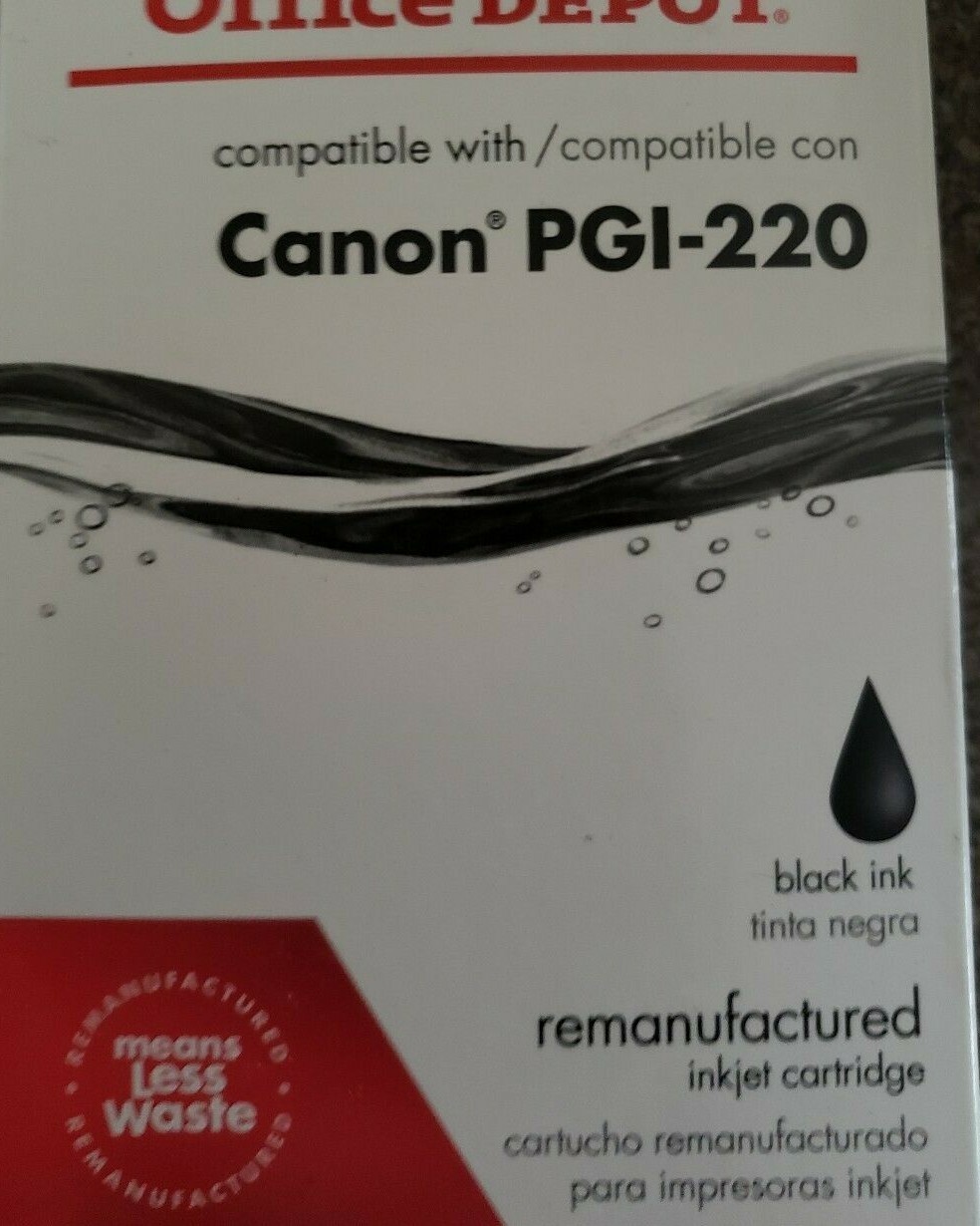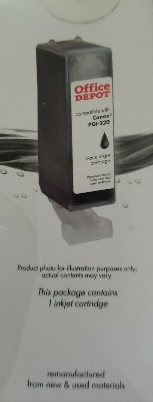 This sale is for one (1) Office Depot Brand re-manufactured cartridge Cartridge is laboratory tested for quality, performance and page yield Compatible Canon models: PIXMA: iP3600, iP4600, iP4700, MP540, MP550, MP560, MP620, MP630, MP640, MP980, MP990, MX860, MX870, PMFP1, PMFP3, SFP1, SFP2 PIXUS: MP610, MX860 Comparable to the Canon PGI-220 cartridge Yields up to 324 pages. Ink cartridge is new in original packaging Please view photos for a good DESCRIPTION of this item Thank you!