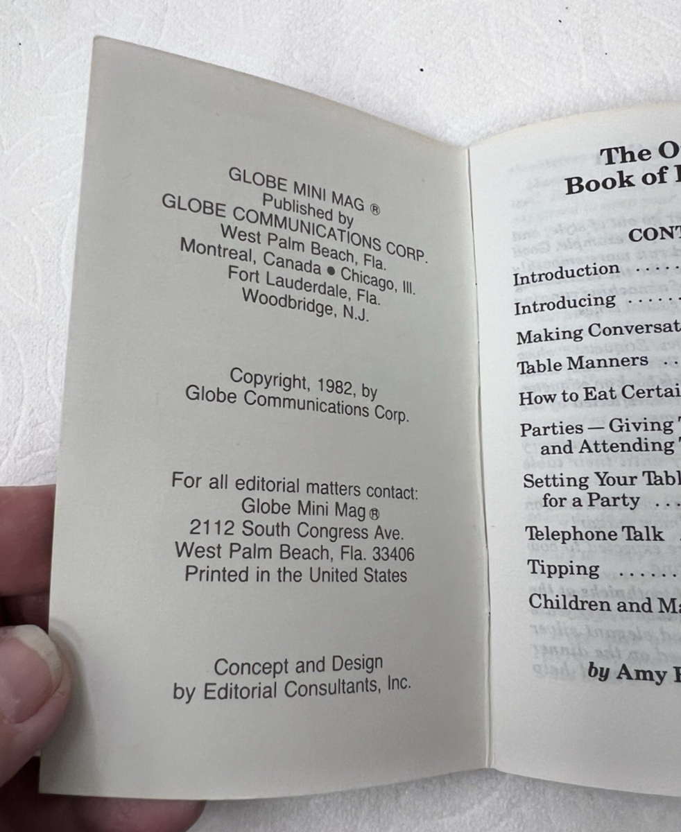 Official Book Etiquette Complete Guide To Good Manners In The 1980'S Dell Mini I was a child and in the 80s and I remember racks of these miniature books at the checkout at the grocery store. This happens to be in great condition and it tells you the etiquette that you so desired in the 1980s.