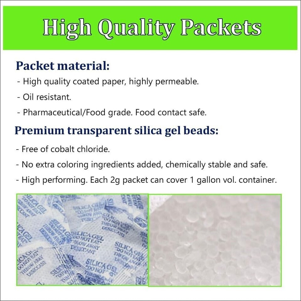 Package includes: 100 desiccant packets, each weighing 2 grams.
