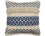 Product description: Made from 100% cotton, the 20 inch square Ojai Blue Bohemian Pillow has a soft denim blue pattern in chenille woven into a rich textured broadweave fabric. Embellished with a soft fringe, this hand-loomed pillow combines the best of creative Boho style with contemporary flair.