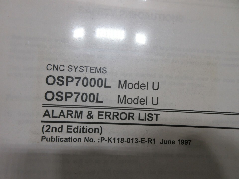 OKUMA OSP700L MODEL U 7000L ALARM & ERROR LIST P-K118-013-E-R1 1997 CROWN