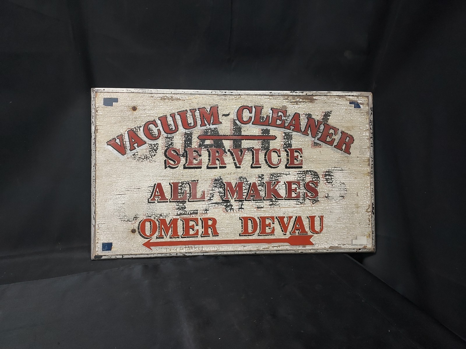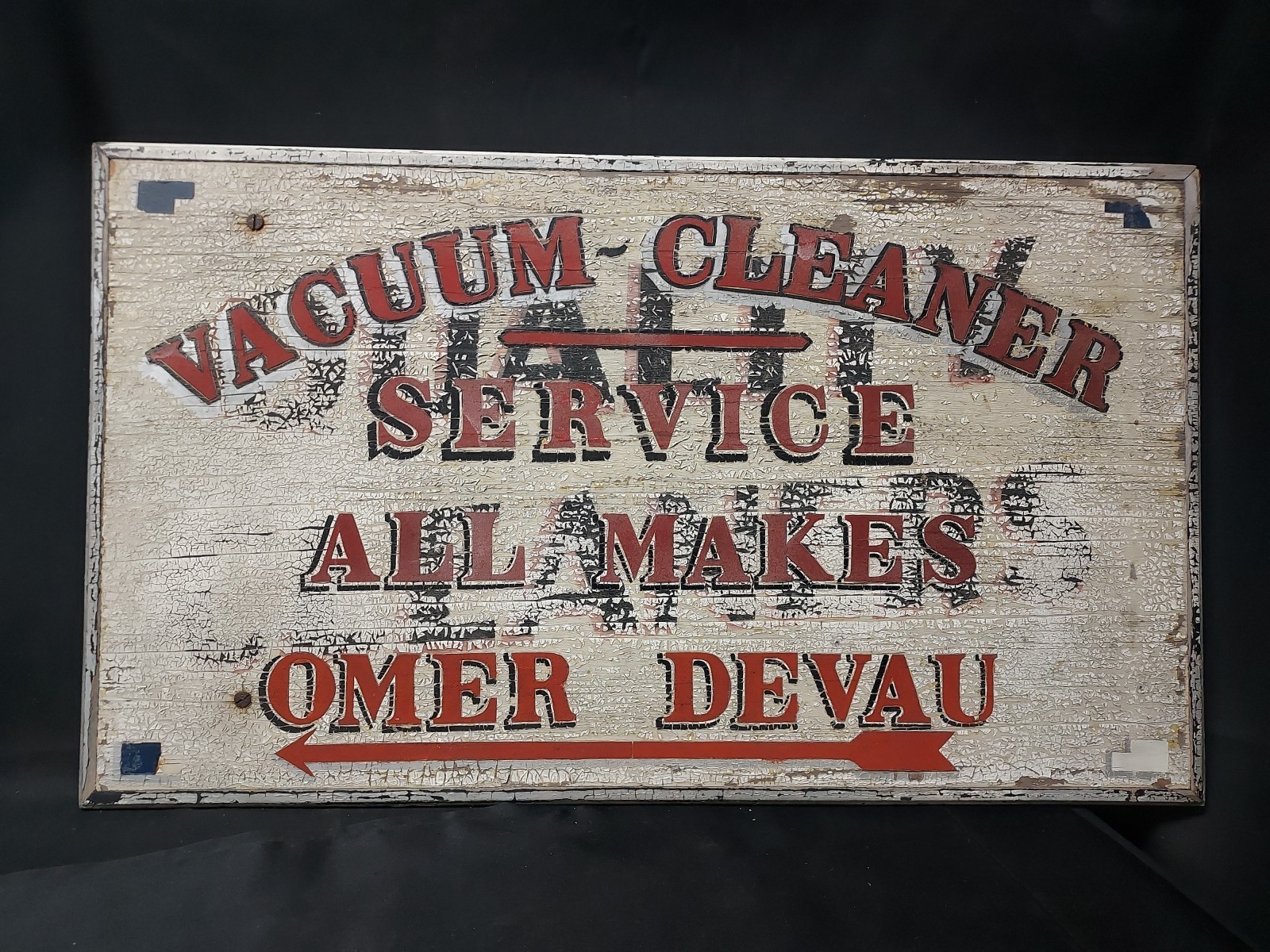 Primary image for OLD Hand Painted Wood Sign VACUUM CLEANER SERVICE Omer Devau Derby Line Vermont