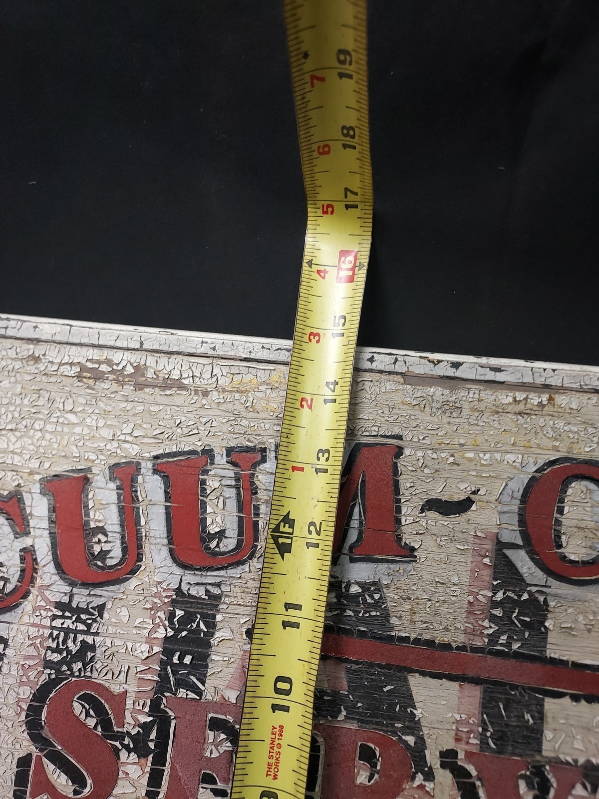 OLD Hand Painted Wood Sign VACUUM CLEANER SERVICE Omer Devau Derby Line Vermont
