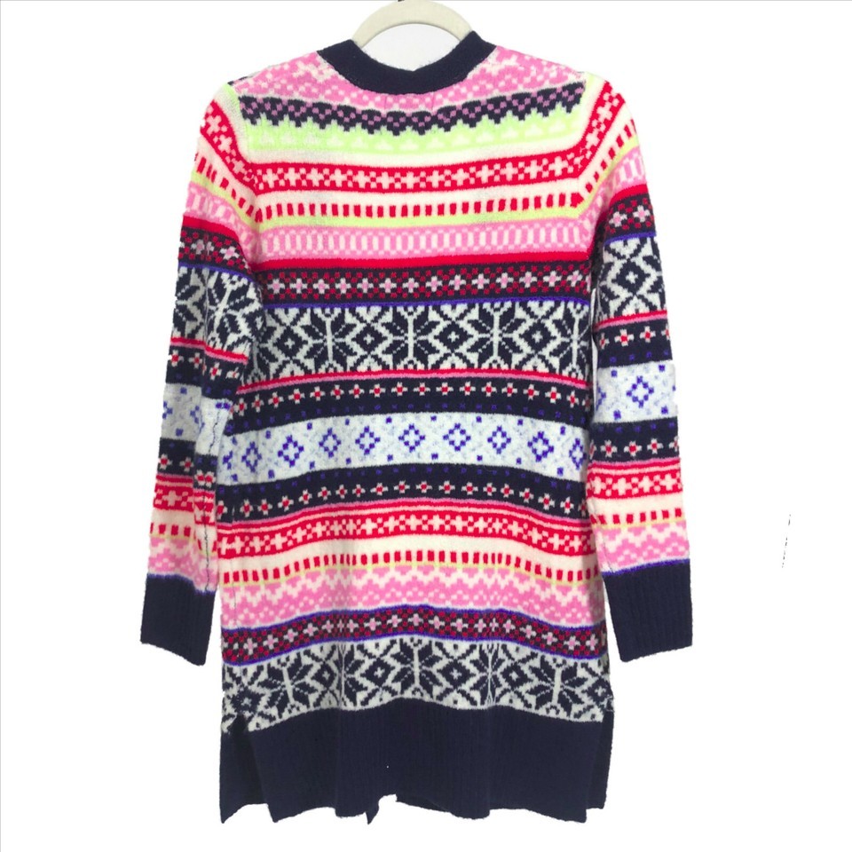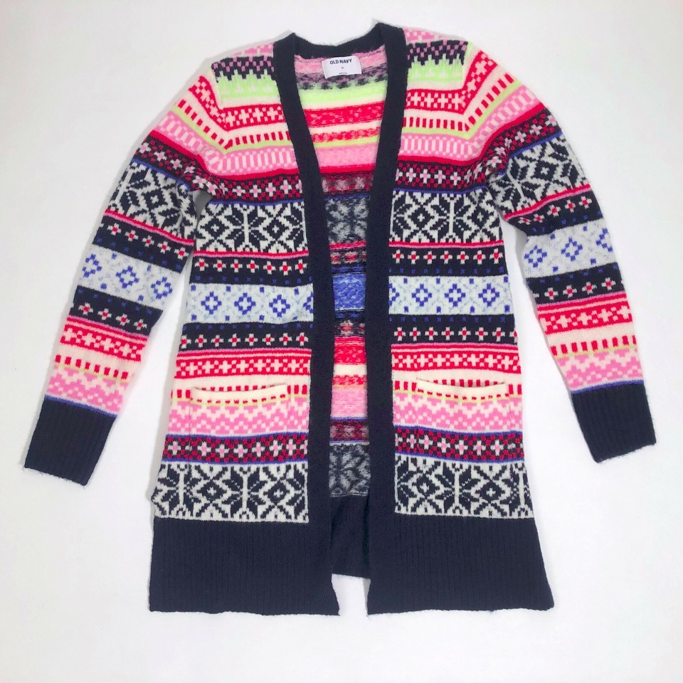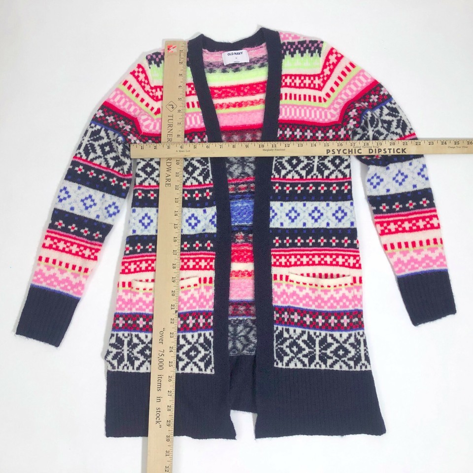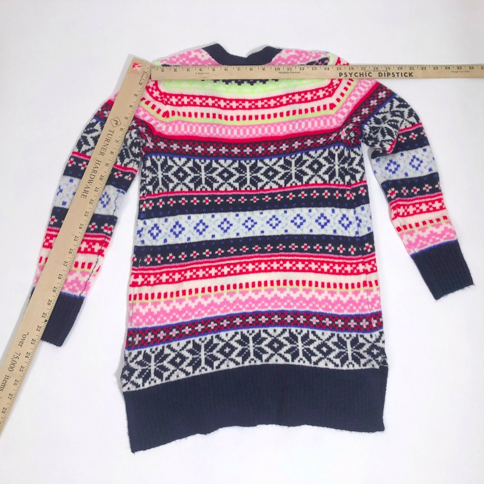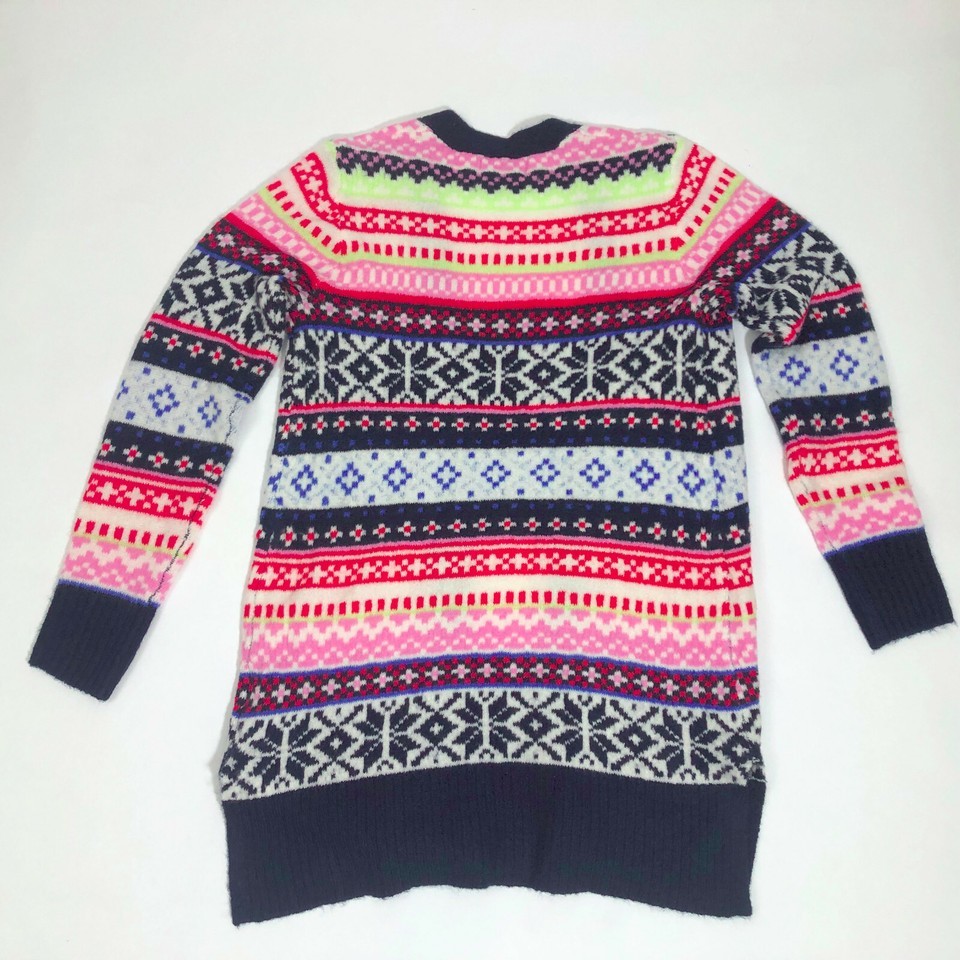 Old Navy Long Open Front Cardigan Sweater Multi-Color Nordic Print X-Small