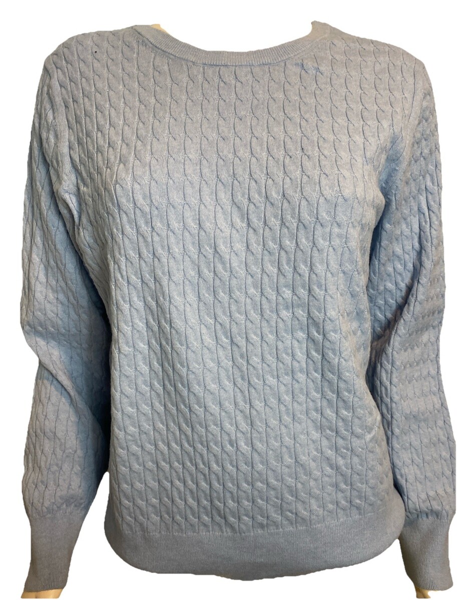 Old Navy Women's Sweater Size XL Cable Knit Pullover Light Blue Materials: 55% Cotton, 45% Polyester Measures: Underarm to Underarm - 23" Shoulder to Hem - 26" Machine Wash Cold Lay Flat to Dry Very Good Condition See all photos. Non-smoking home. Be sure to check out my other items! I am happy to combine shipping charges. Please note: My goal is always 100% complete customer satisfaction. If for any reason you feel your item arrives "not as described," please contact me before leaving feedback. I am a trading assistant. I can sell items for you! |KES-TE|