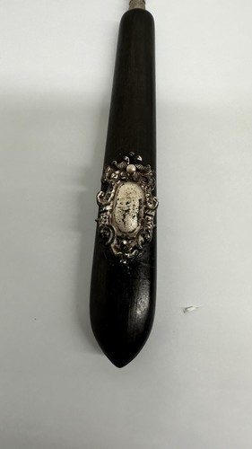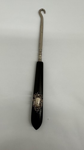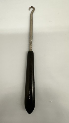 This vintage boot lace hook is a must-have accessory for any fashion enthusiast. Made from high-quality ebony, this original piece is a rare find that will add a touch of sophistication to any outfit. The black color and intricate design make it a versatile piece that can be worn with a variety of shoes.