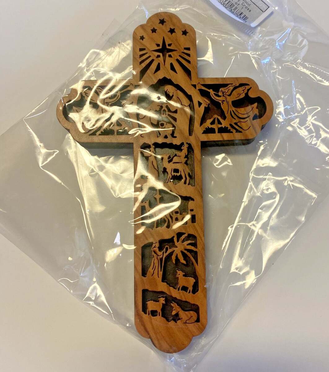 - Olive Wood Nativity 6" Small Cross, New #AB-345-R2