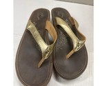 OluKai Paniolo II Brown Gold Leather Wedge Thong 20133-5048 Womens Size 9 EU 39