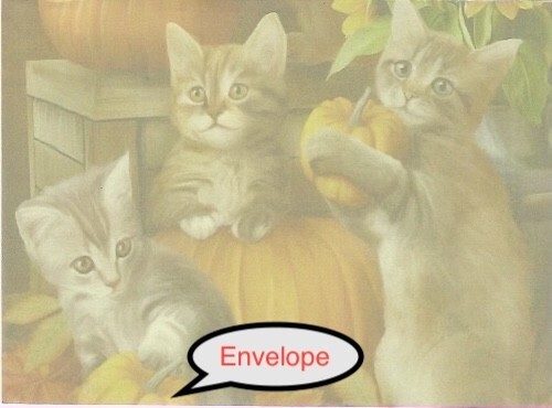 - OnLot of 4 Cute Kittens Thanksgiving Card, Fall, or Halloween Cards w/Envelopes!