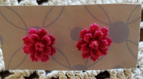 One (1) Pair Fashion Earrings ~ Pink Flower ~ Studs/Posts ~.50" Diameter ~ 89