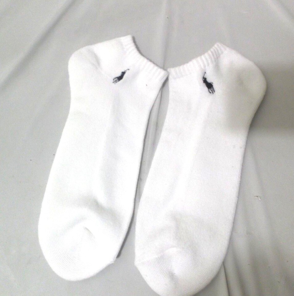 One Pair of Ralph Lauren Polo SIZE 6 - 12 1/2 Athletic Socks / Socks fit between 6 and 12 1/2 . I buy these by the 3 pack and I know sometimes you only need one pair . So I'm breaking them all up and selling them by one pair. These are the Athletic Sports Ankle Socks Color White . These are perfect for Walking Running Sports . These are Authentic Ralph Lauren Polo Socks . The PACKS I buy are sized from 6 to 12 1/2 . Try One PAIR and I guarantee you will be back to buy more .