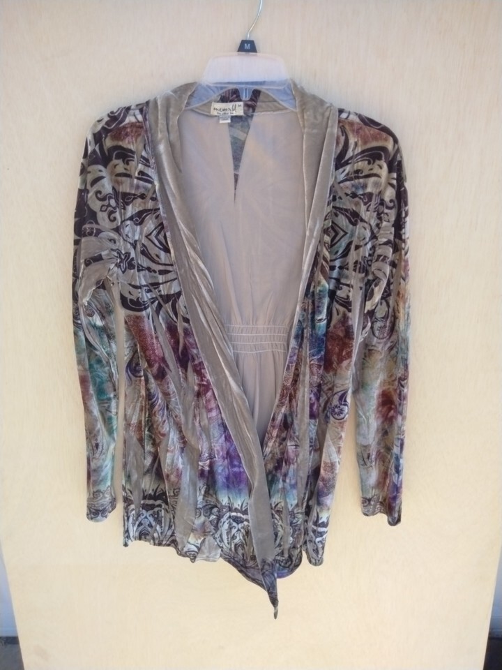 One World Kimono Women’s Medium Top Boho Duster Festival Cardigan Velvet