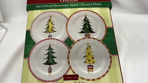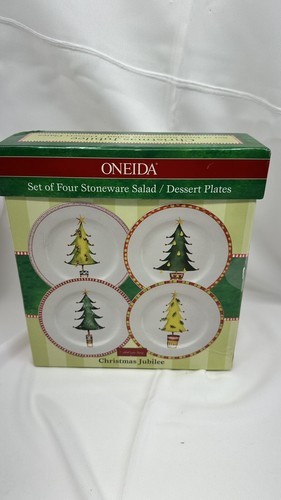 - Oneida Christmas Jubilee Stoneware Salad/Dessert Plates - 8" Dishes - Set of 4