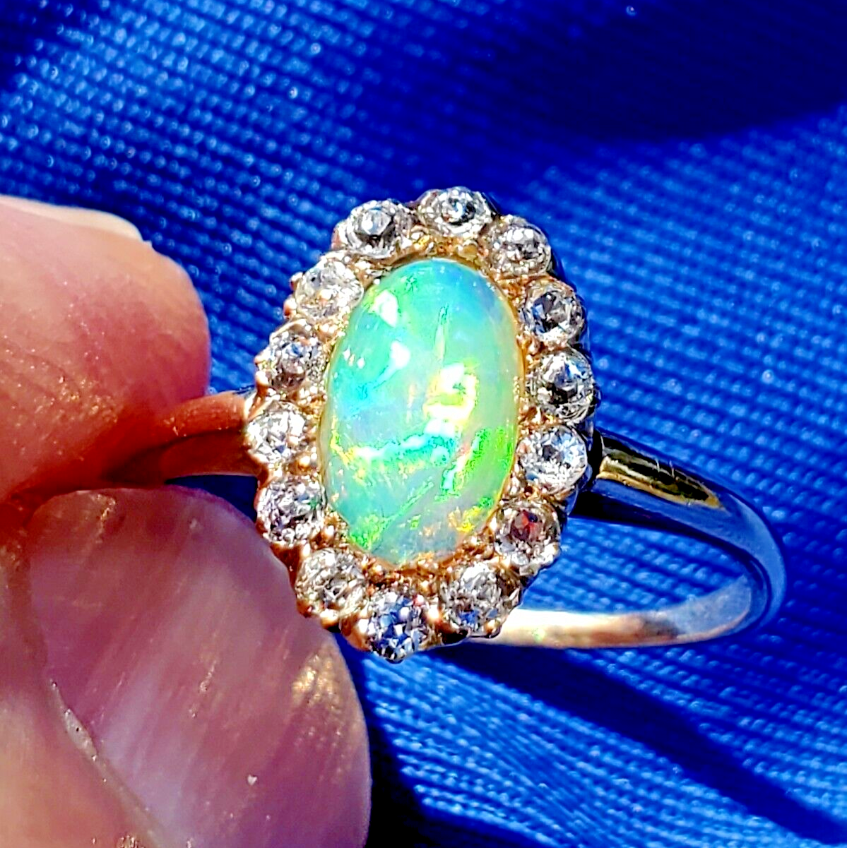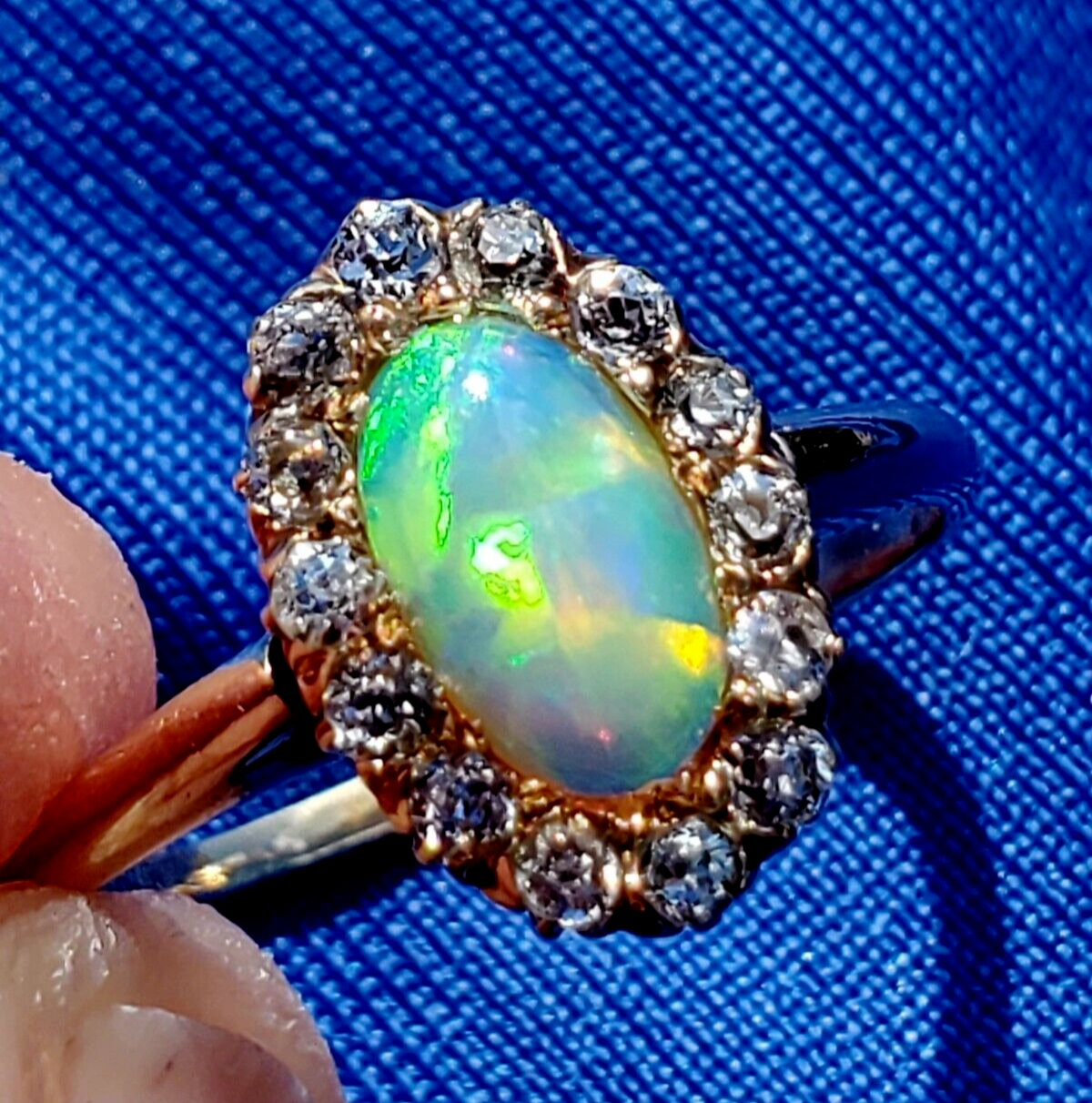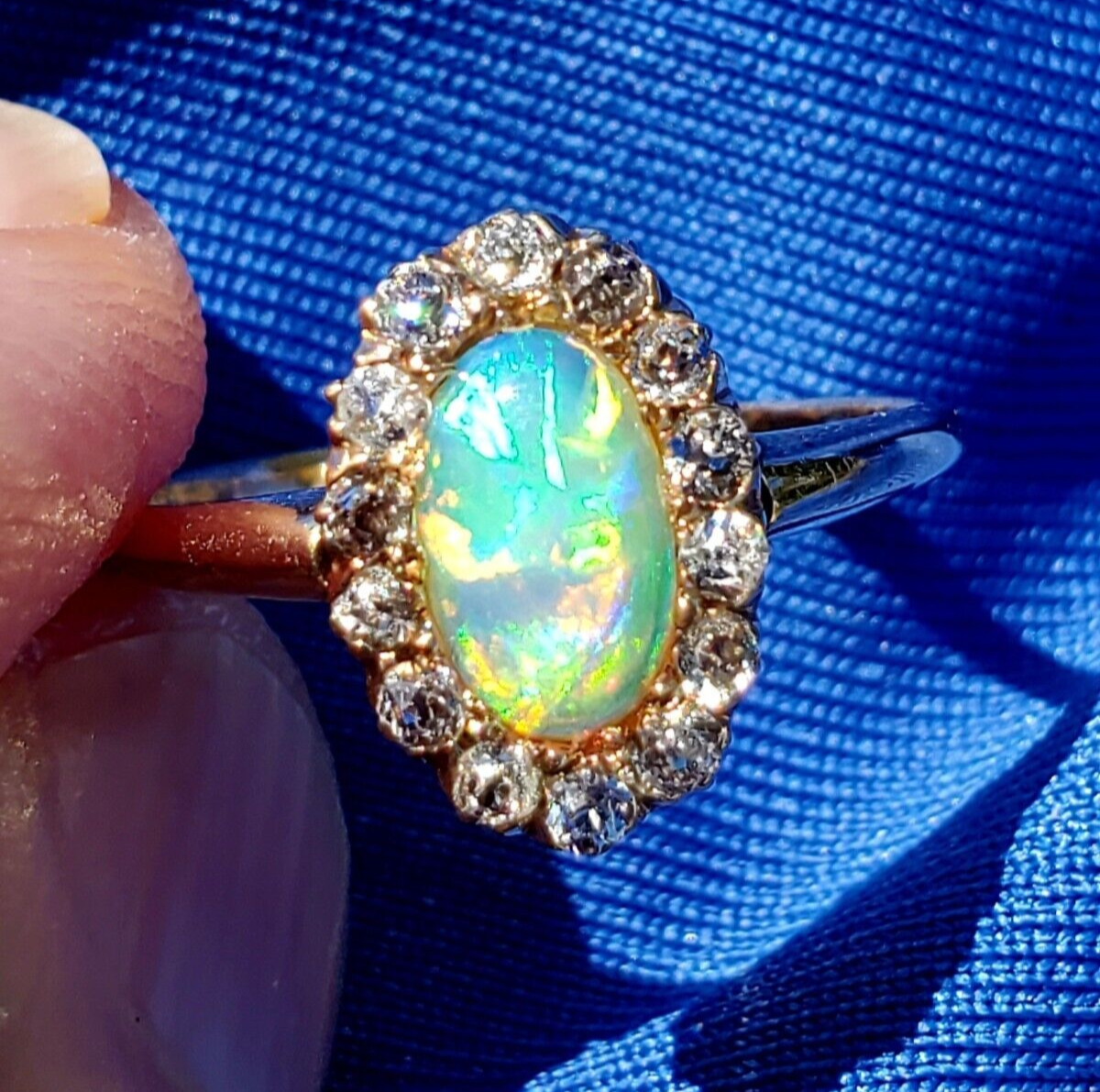 ELEGANT ANTIQUE NATURAL OPAL DIAMOND GATSBY ERA ENGAGEMENT RING.
