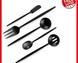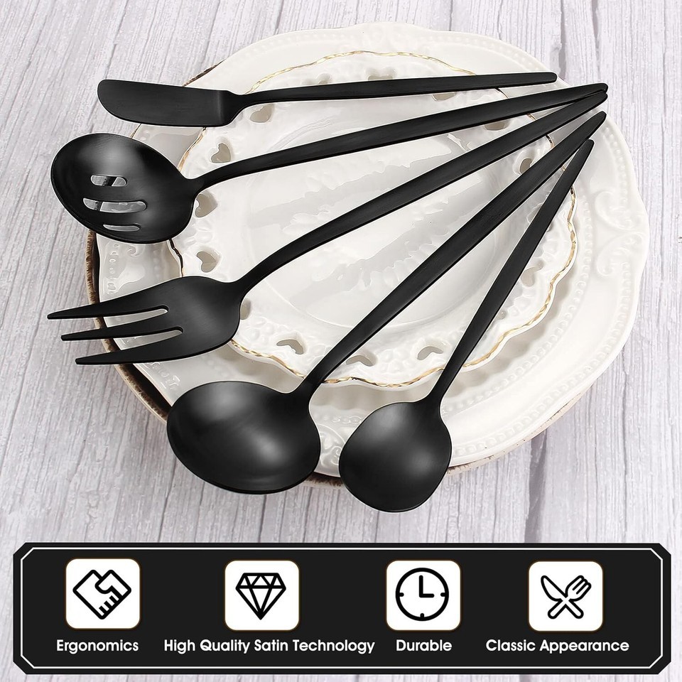 - Opulent 5-Piece Round Silverware Set in Matte Black for Entertaining Guests