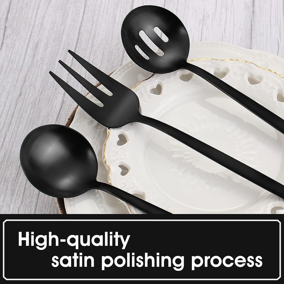 Set Includes: Serving Salad Tongs,Serving Fork,Serving Spoon,Slotted Serving Spoon,Butter Knife,Sugar Spoon