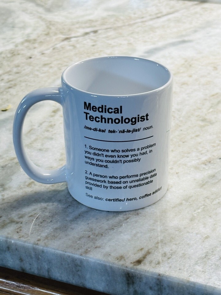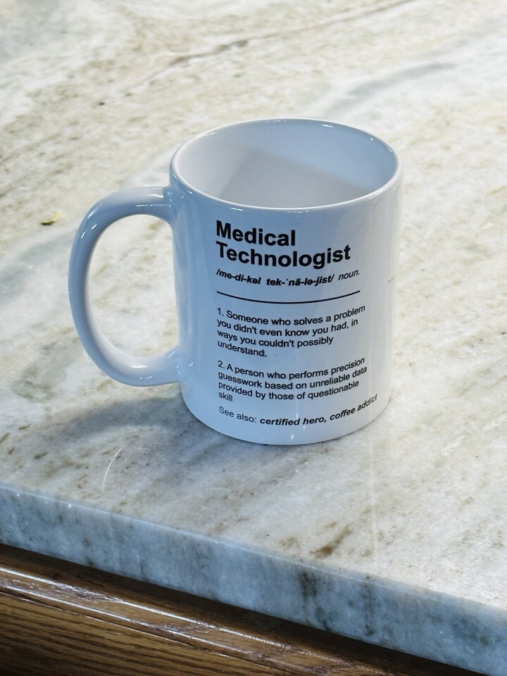 With its high-quality ceramic material, this mug is durable and perfect for everyday use. Its capacity of 11 oz is just the right size for your morning cup of joe or afternoon tea. So whether you're a medical technologist yourself or know someone who is, this mug is a must-have addition to any collection. ShipN24Hours. Inventory Location MW771