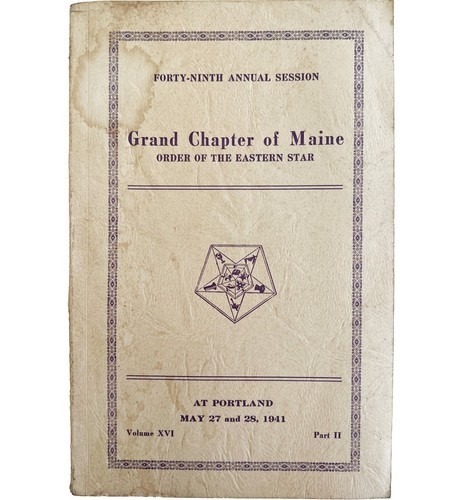 Order Of The Eastern Star 1941 Masonic Maine Grand Chapter Vol XVI PB Book E47