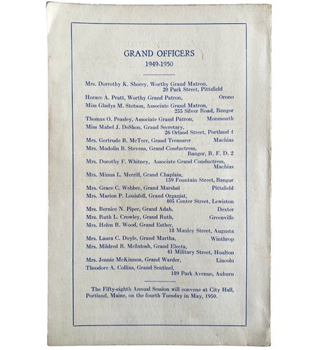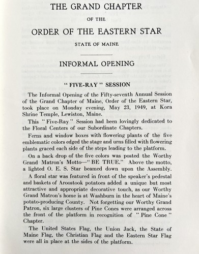 Order Of The Eastern Star 1949 Five Ray Masonic Maine Grand Chapter Kora PB E52