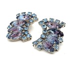 Un paio di clip sugli orecchini con pietre di lavanda del Marchese circondato da strass rotondi pervinca.