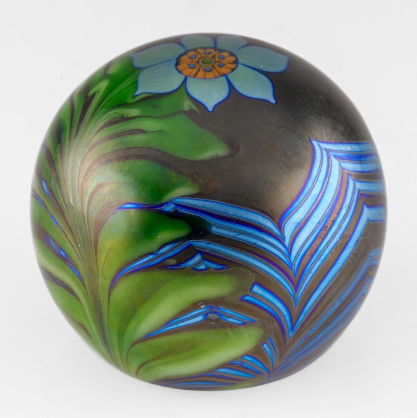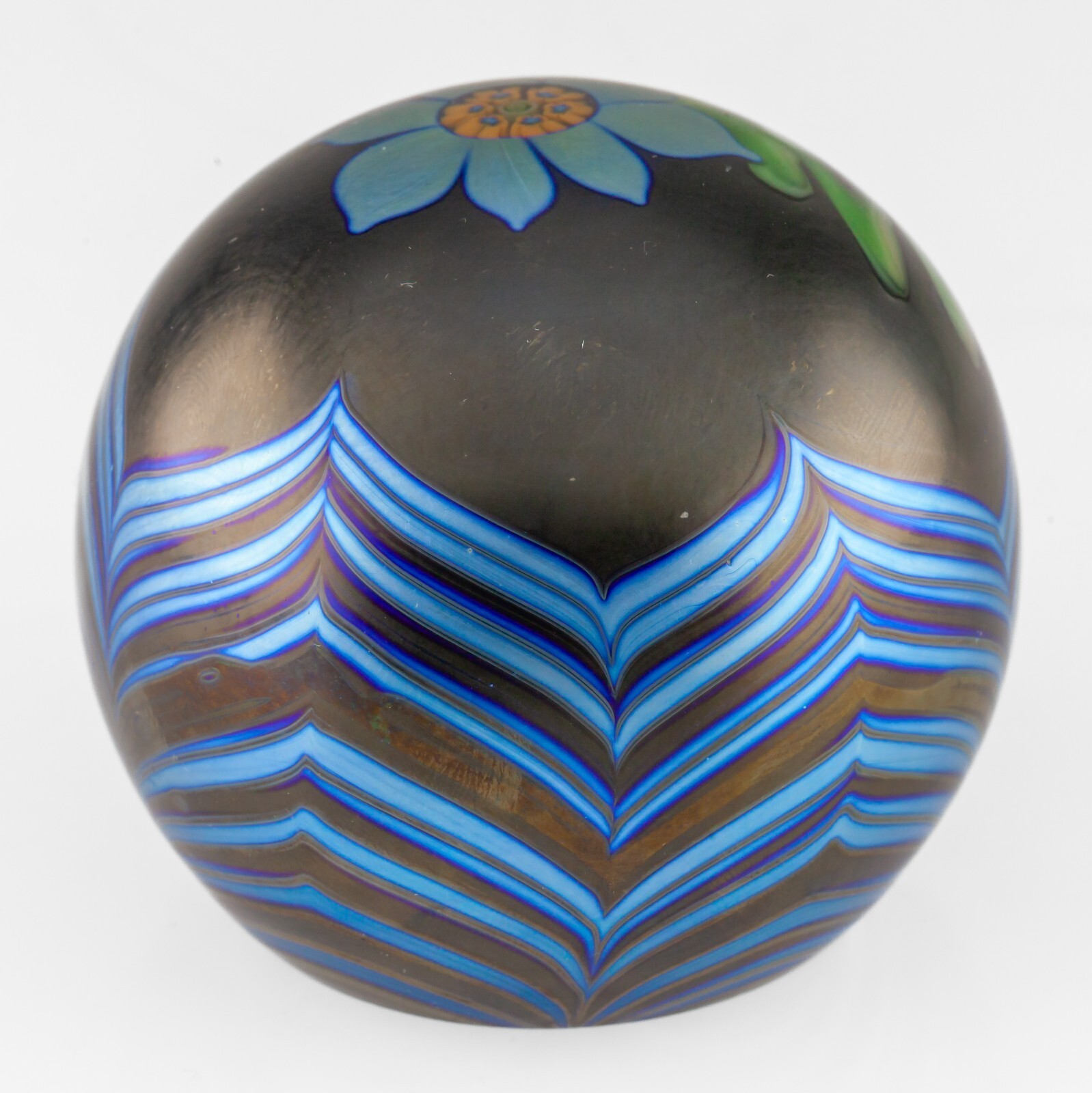 - Orient & Flume Feathered Millefiori Paperweight 3" 1977 w/ Original Box & Pouch