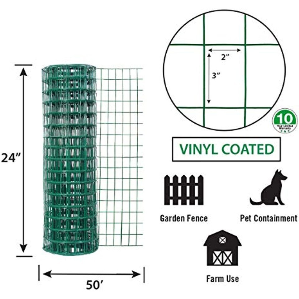 - Origin Point 22450 24 Inches x 50 Feet 16-Gauge Green Vinyl Coated Garden Fence