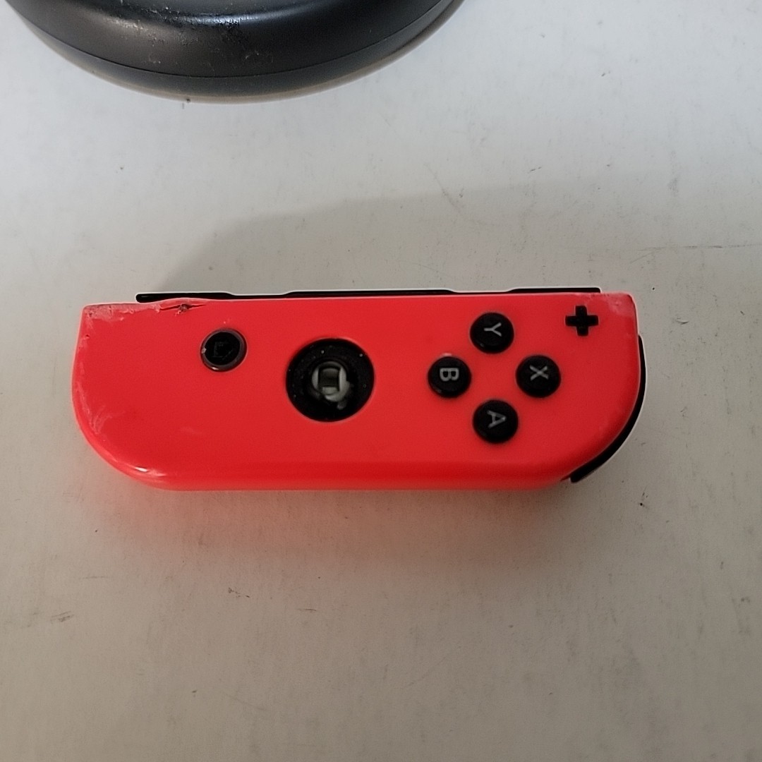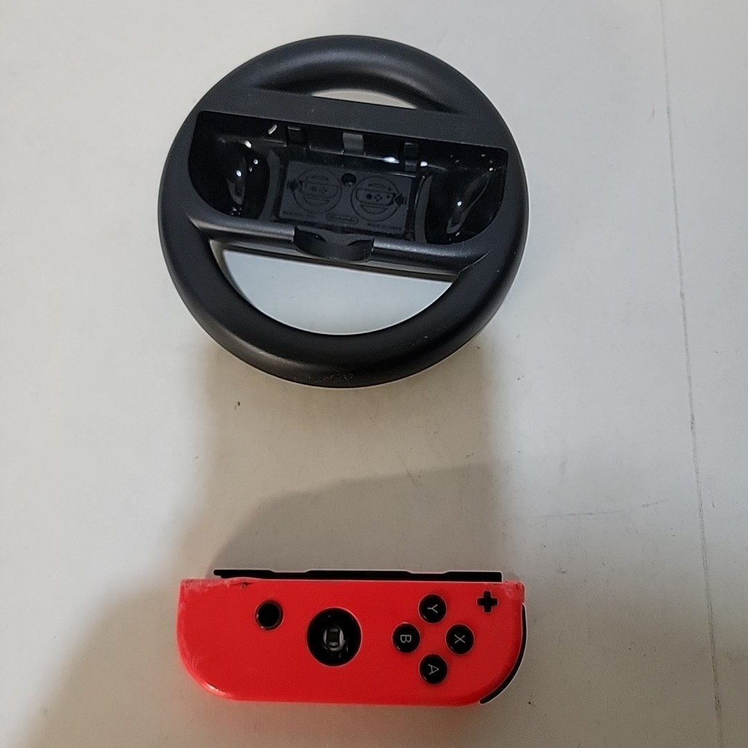 The Original Black Nintendo Switch Joy-Con Steering Wheel is a genuine OEM product by Nintendo specifically designed for Mario Kart and other racing games. This steering wheel attaches to the Nintendo Switch Joy-Con controllers to enhance the racing experience for up to two players. Made of durable plastic material, this racing wheel features a sleek black color and is compatible with the Nintendo Switch platform. With a simple connectivity process as a controller attachment, this Joy-Con steering wheel offers an immersive gaming experience with its wheel design and compatibility with various racing games on the Nintendo Switch console. Also includes a broken Joy-con for parts.