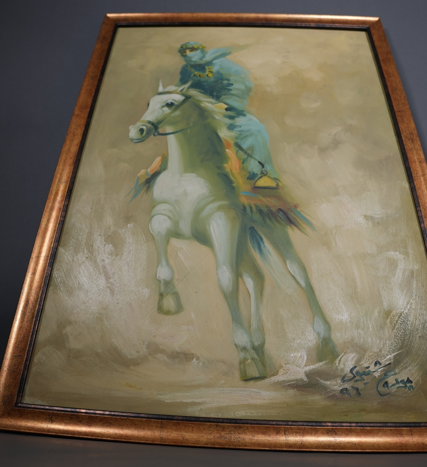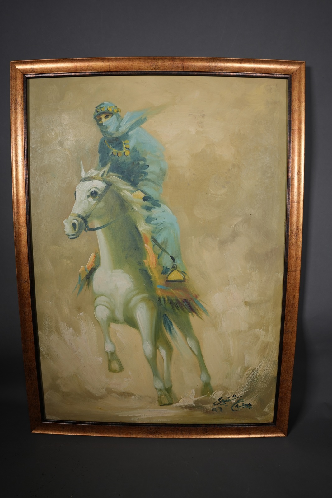 Up for sale 1996 Original Oil on Canvas “Arabian Knight / Horseman” Signed George Shtiwi ( renowned Christian Arab Artist and Activist )