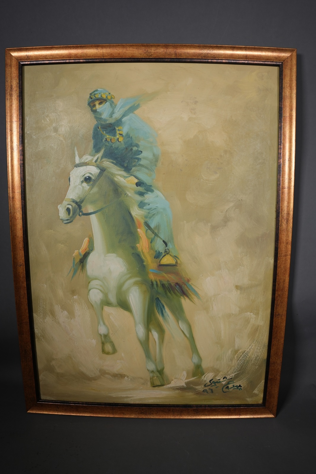 - Original Oil on Canvas ” Arabian Knight / Horseman ” by George Shtiwi 1996