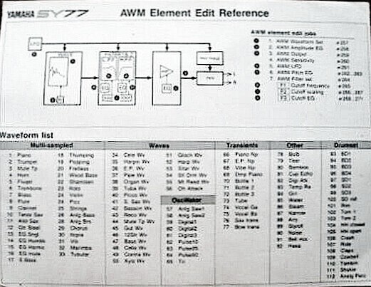 - Original Yamaha SY77 AWM and AFM Edit / Waveform List Reference Quick Info Sheet