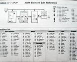 This is a supplemental / quick view type of sheet for the Yamaha SY-77 synthesizer workstation. It's an original document from Yamaha and has quick, easy view detailed information on the sound forming functions of this powerful synthesizer. One side as the AWM (sampled waveforms) Element Edit Reference, with diagram, AWM element edit jobs, and waveform list. The other side as the AFM (FM synthesizer) Element Edit Reference, with diagram, AFM element edit jobs, and examples of how the FM operators are used (one to six carriers).
