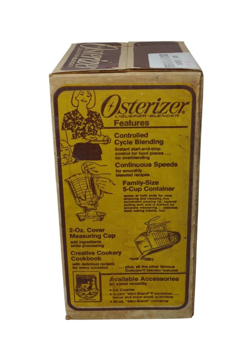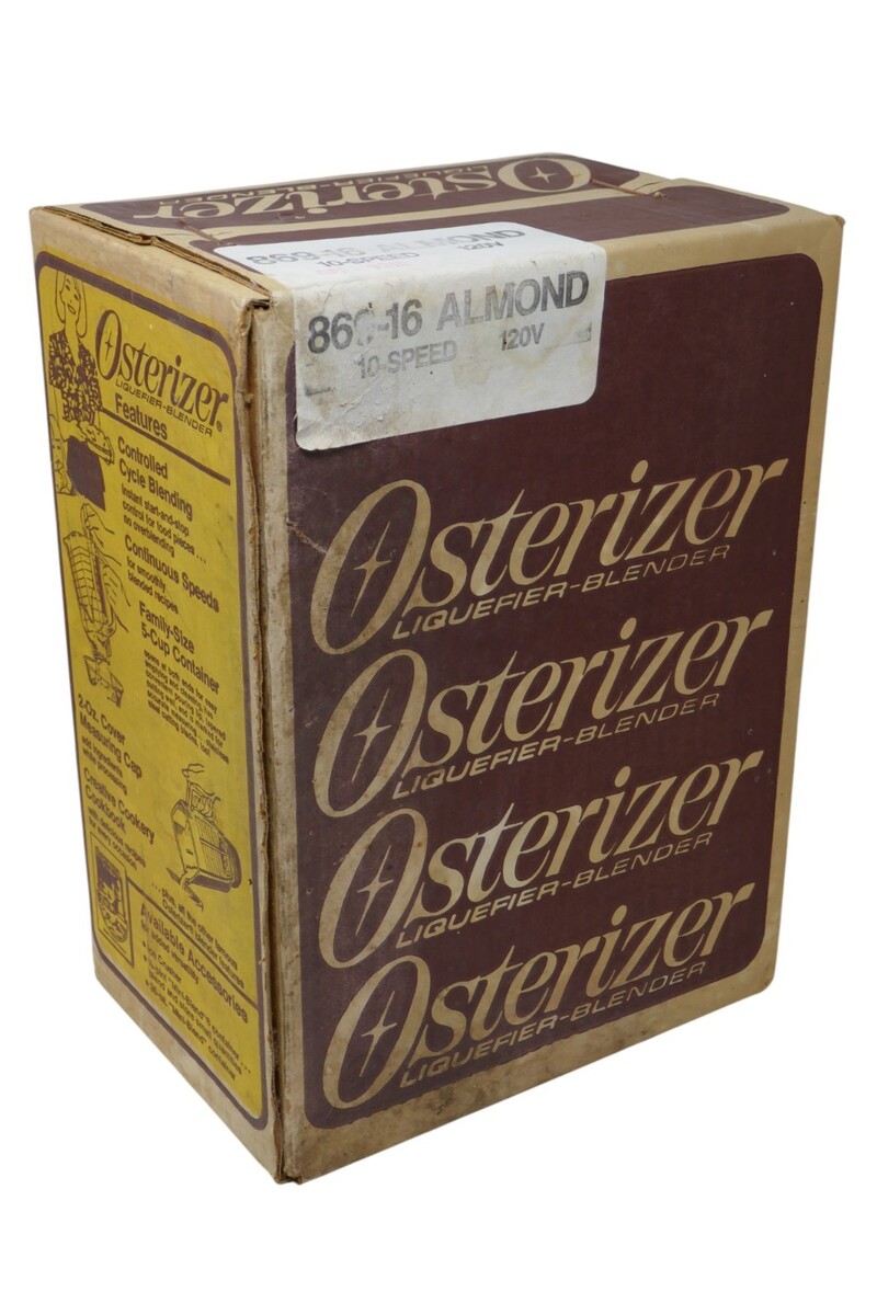 The Osterizer Liquefier Blender in Almond color has a rectangular shape and is a plug-in electric blender with 10 speeds. This vintage appliance, manufactured in the United States in the 1970s, comes in a sealed box with the components including a blender, pitcher, and base. The box does have wear from storage. See photos for item condition, this is a picture of the actual item. All reasonable offers considered!! **Payment** We do expect payment within 48 hours of the purchase. If for some reason you need a couple of extra days, please let us know. **Feedback** Once you have received your item, if you are satisfied, please leave feedback. We are happy to leave feedback for you after you have left feedback for us to let us know that you have received your item and the transaction is complete. Please contact us before leaving feedback if there is a problem. **International Buyers ? Please Note** Import duties, taxes, and charges are not included in the item price or shipping cost. These charges are the buyer's responsibility. Please check with your country's customs office to determine what these additional costs will be prior to bidding or buying. Check out our store for more deals!!