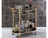 Add a bold statement to your kitchen or dining room with this Ottesen serving cart. With metal in a gold finish, and black tempered glass on both shelves. The caster wheels allow you to move from room to room effortlessly. Along with its excellent functionality, its oval shape design is unique and trendy.