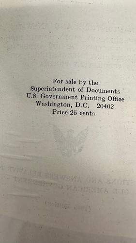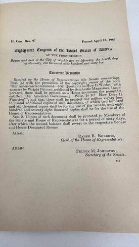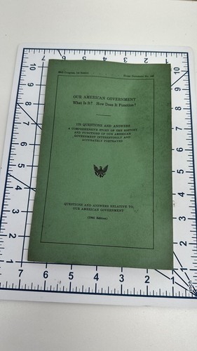 Cover has some staining This book is a valuable resource for anyone interested in learning about the United States government. It is a paperback edition titled "Our American Government" by Senator William Proxmire, published in 1967 by the US Government. The book covers a wide range of topics related to government and is written in English.