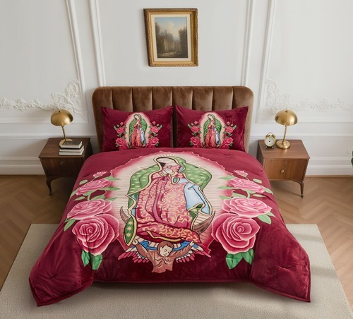 - OUR LADY OF GUADALUPE BLANKET WITH SHERPA SOFTY THICK & WARM 3 PCS QUEEN SIZE