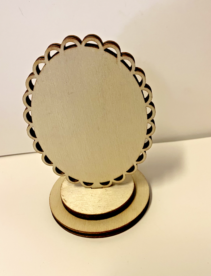You are purchasing a very nice scalloped wood image of Our Lady of Grace set on a wood stand.