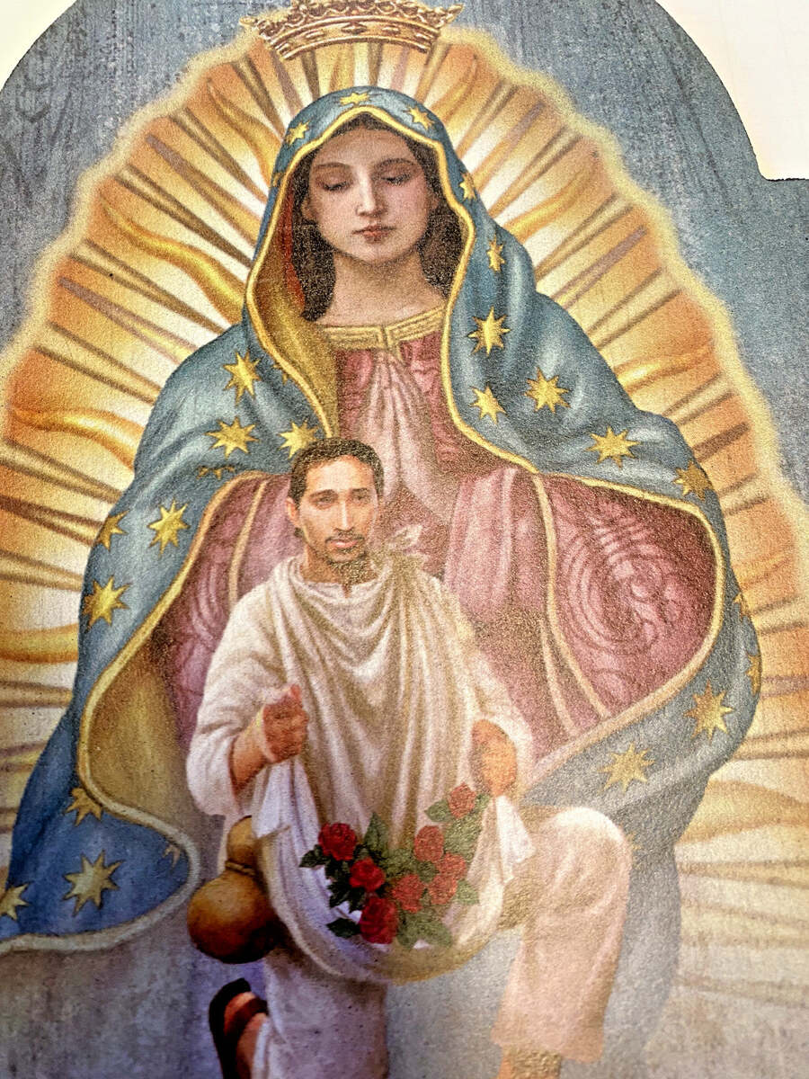 - Our Lady of Guadalupe with Juan Diego 12" Arch Wood Plaque, New #AB-170