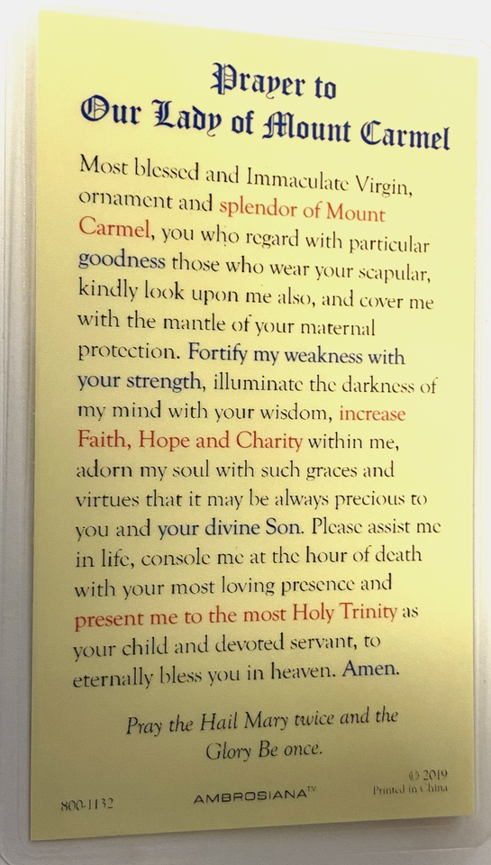 - Our Lady of Mount Carmel Prayer Card, New #PCL-17